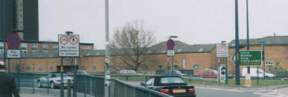 Another view of the junction. The sports centre (including a climbing wall, I believe) is in the foreground -- you can see the roof as you use the roundabout overhead. |
