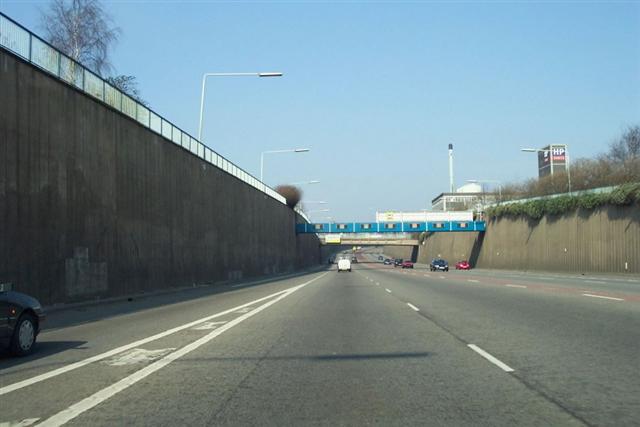 The start of the tidal flow section. The matrices are too dim to be seen in the bright light, but a sufficient tint of green or red exists in order to put you off the wrong lane!
