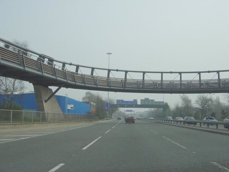 The sliproad from the A56 junction has joined us now, and the junction with the A5103 towards the M56 is ahead. Note the lack of hard shoulders.