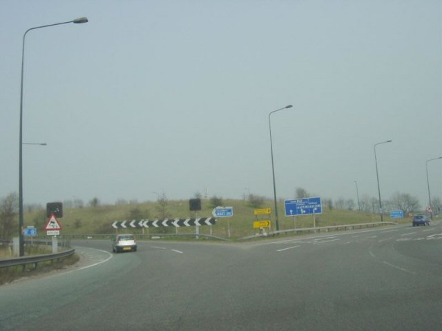 Turning back off the roundabout to carry on along the same motorway towards Rochdale. The space for the flyover is even easier to see from here.