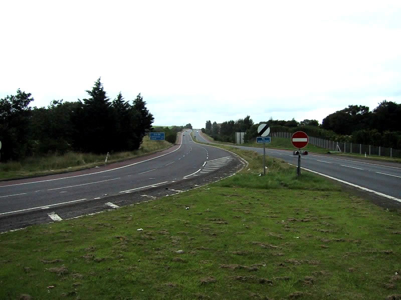 The view that greets anyone joining the A8(M) from Sandyknowes. The first half mile is 3 lanes, narrowing to 2 at the top of the hill. The southbound side is 2 lanes.