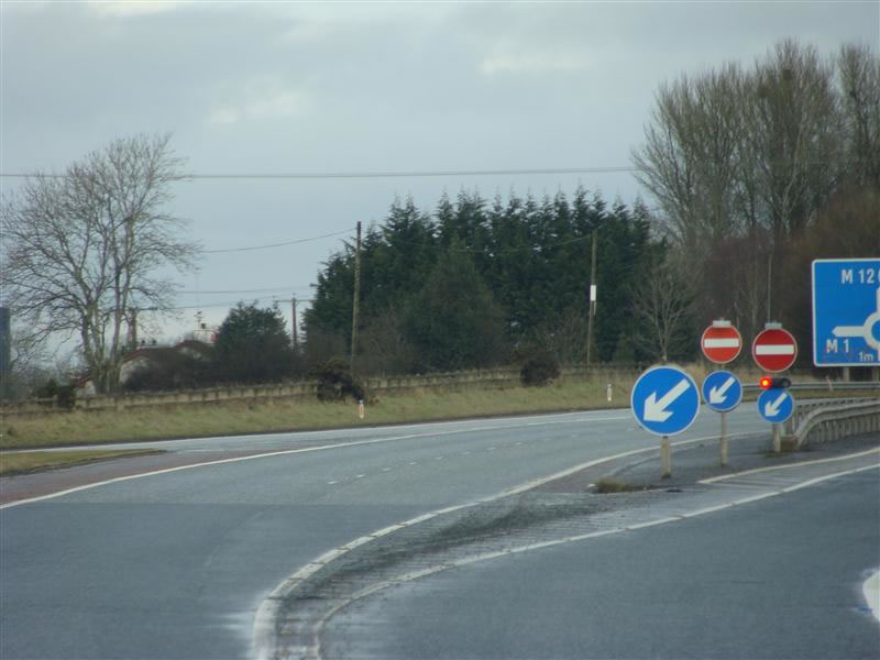 We get under the bridge, onto the motorway proper, and only then go dual carriageway, with some of those fancy flashing "no entry" lightst that Northern Ireland uses. And what's coming up, eh?
