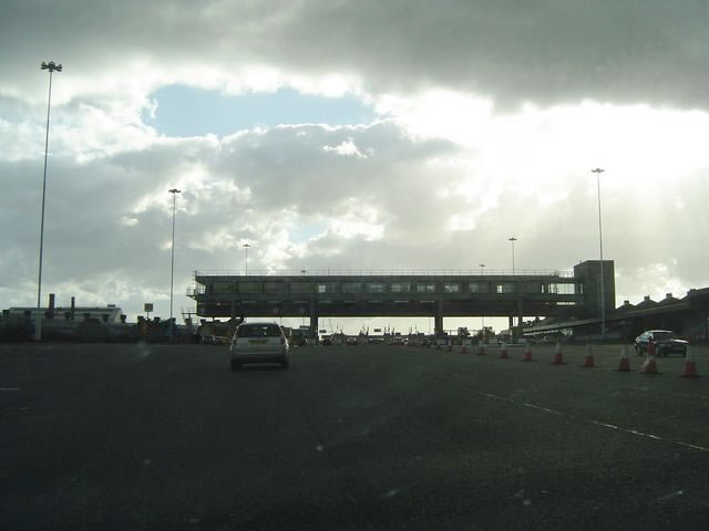 Through the tunnel and out the other side with the futuristic toll plaza.