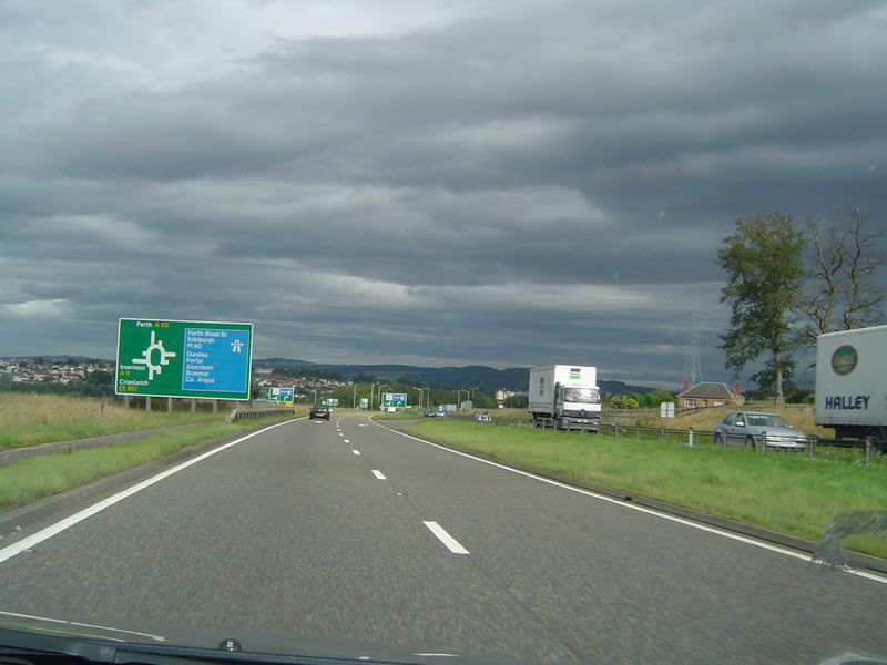 Heading east on A9: Broxden Roundabout, the northern outpost of the British motorway network.
