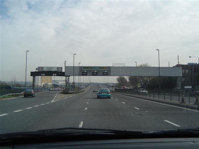Having just left the Blackwall Tunnel, the gantry above marks the start of the former motorway.