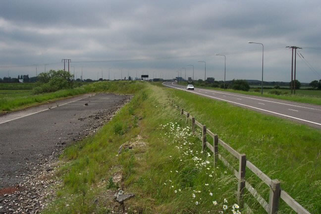 The relationship between the two carriageways can clearly be seen in this image, even with the right hand edge of the westbound carriageway being in poor condition.