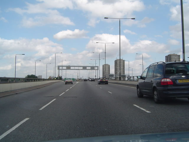 Somebody's off to the West Cross Route. Meanwhile, if you look carefully, you can see the old motorway warning lights on the gantry.