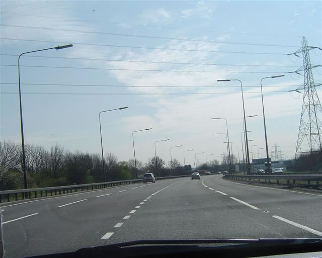 Four lanes wide - and the hard shoulder's gone! Presumably this opened as three lanes wide...