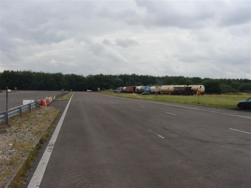 There's an old-fashioned crossover point in the middle of the motorway, today blocked off by those red and white barriers.