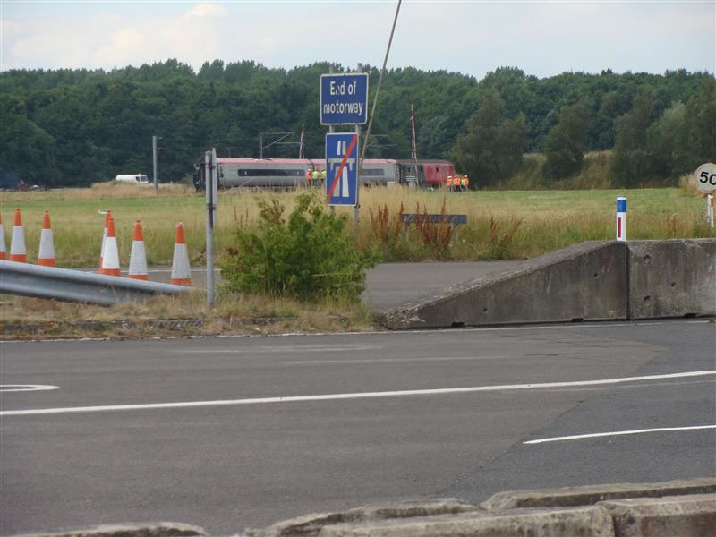 The end of the motorway (and the tour), with the "level crossing" in the background.